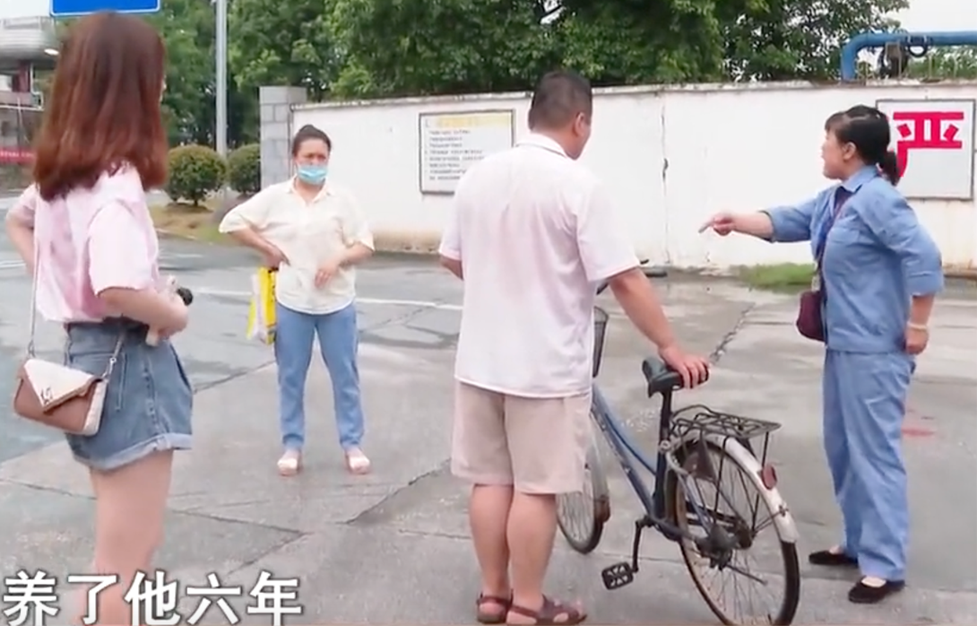 眼看着妻子和姐姐争吵愈演愈烈,四十多岁的曹立国推着单车一言不发,像个无助的孩子立在那里。