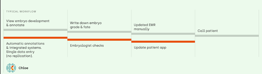 CHLOE™是Fairtility公司旗下主打的一款算法机器人,该名称起源于希腊语的“绿芽”,寓意着“开花”、“生育”。CHLOE™是全球首个且唯一一个基于AI决策的支持系统,它囊括了数百万位患者的胚胎数据,凭借着抓取数据和分析透明化的优势,集成大数据为IVF工作人员提供专业而全面的决策支持,从而提高IVF相关的护理结果。