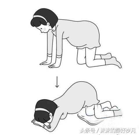 孕妈妈先双手手掌撑地,双膝着地,手和大腿都和地面垂直,然后请人帮忙在你的膝盖下面垫上一两个垫子,在别人的协助下,将你的胸部放下,尽量地靠近地面。