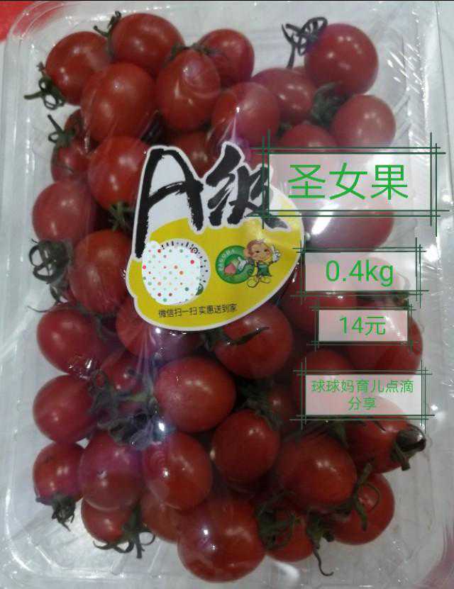 下图买的一盒圣女果重量是0.4kg,价格是14元,吃的量差不多是一盒的三分之一的量(100g多)(如图片)